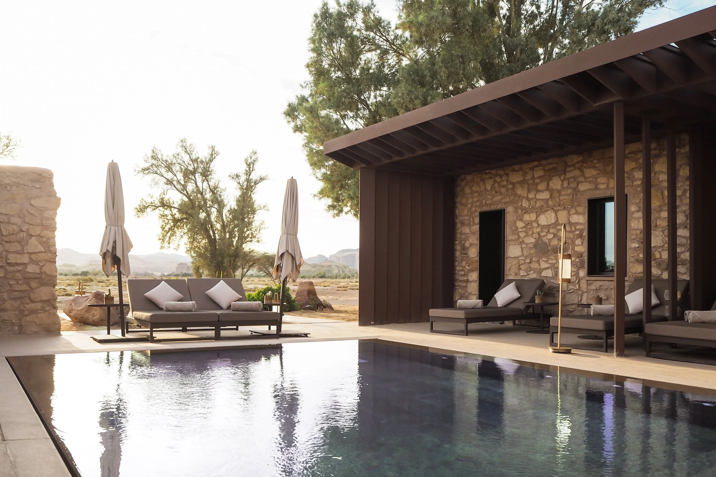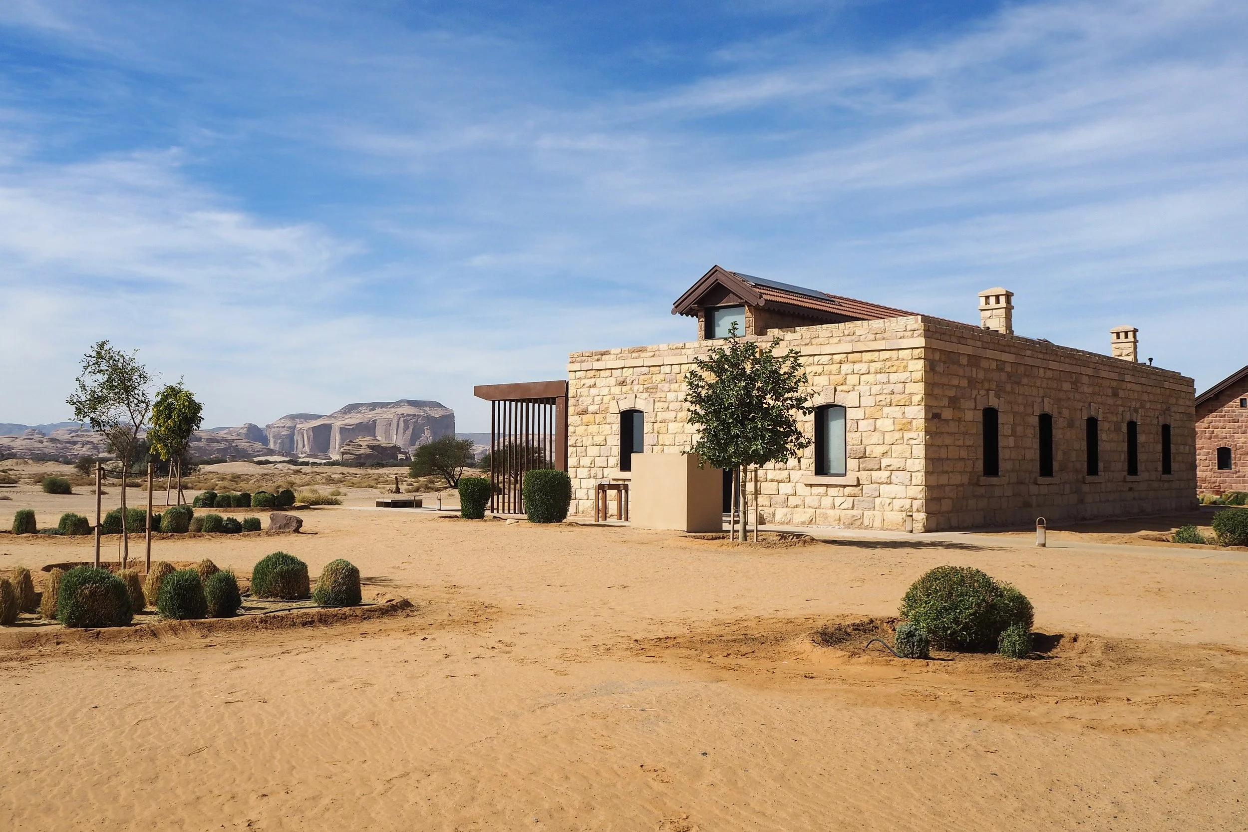 Architectural Alchemy The resort is a masterpiece of "adaptive reuse" by Studio Gio Forma. Every wall is finished with a bespoke plaster—a precise blend of local sand and mud—engineered to disappear into the AlUla cliffs as the sun moves.