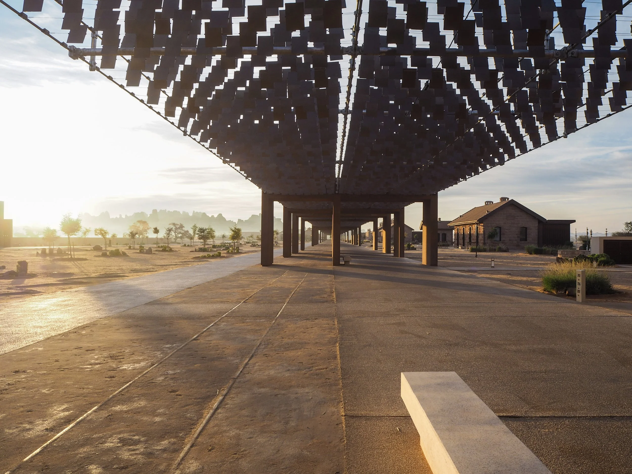 The Shadow Canopy Stretching 700 meters along the old railway line, the structure known as Lamellae acts as an architectural bridge, providing a cooling "shadow journey" that connects historic tracks to modern guest areas.